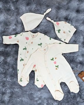 Yenidoğan 2'li Bebek Tulum Seti / &100 Pamuk / 2 Adet Şapka Hediye / Ekru LH6JRGWFVEXQ3